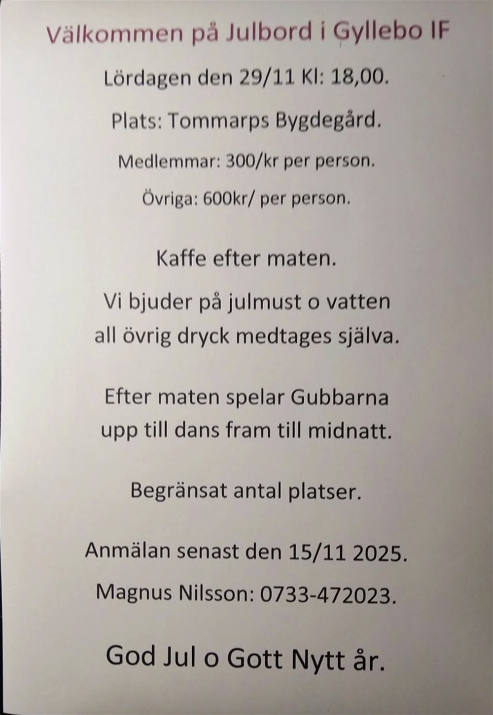 Julbord för Gyllebo Ifs medlemmar